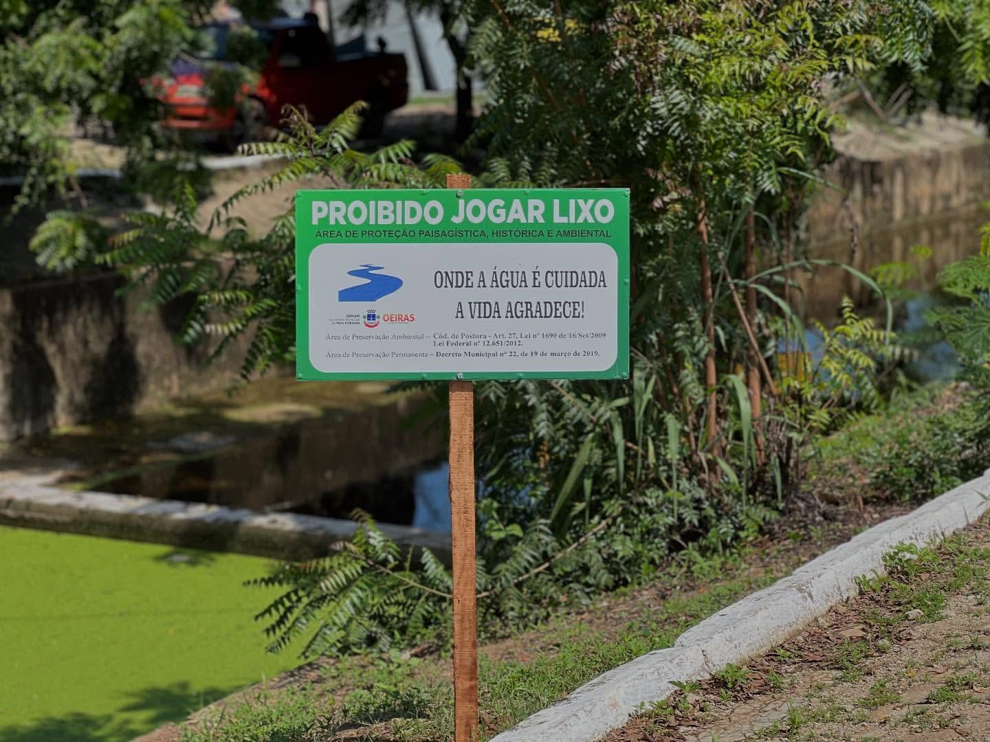 A Secretaria Municipal de Meio Ambiente de Oeiras iniciou nesta quarta-feira (7) a instalação de placas educativas ao longo do trecho urbano do Riacho Mocha.